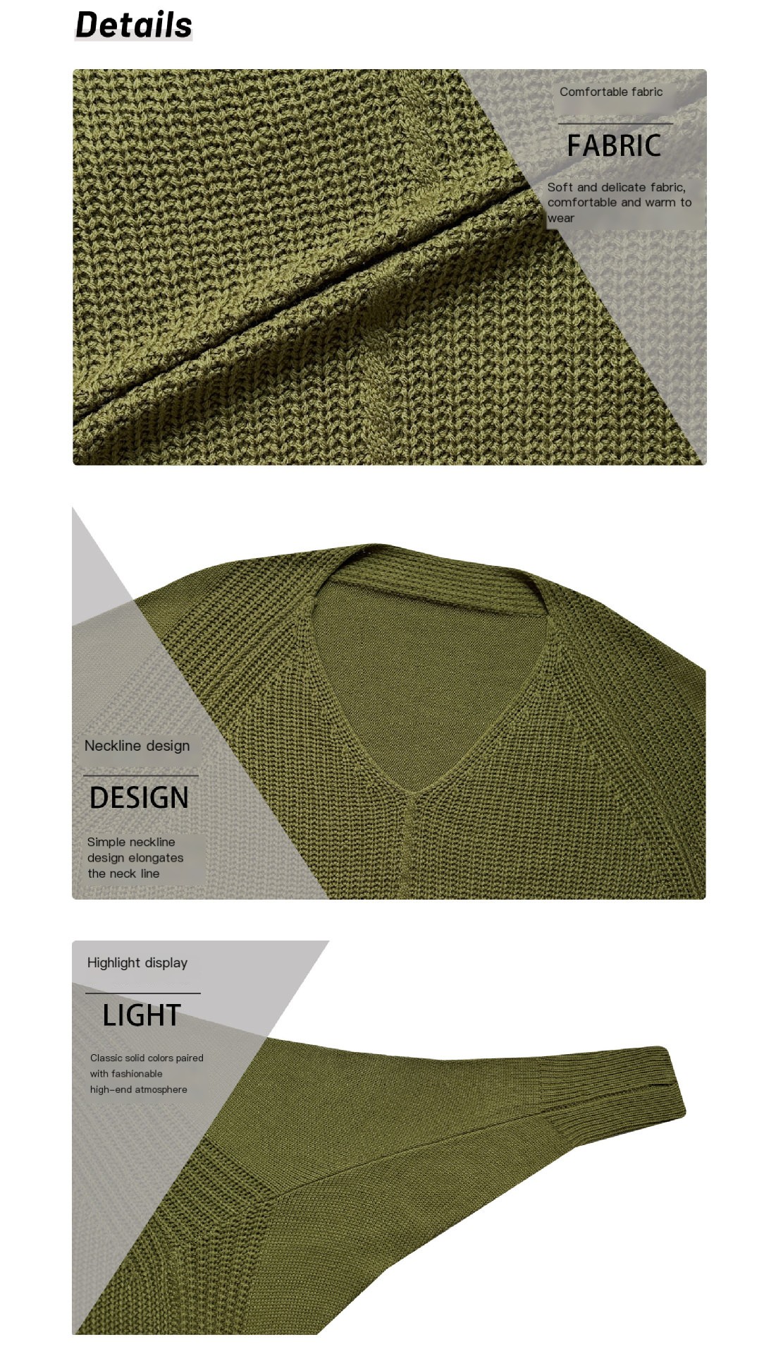 Crafted from 100% acrylic fabric, this sweater offers a soft and cozy feel against your skin. Available in three stunning colors: apricot, black, and green, you can easily match this versatile piece with your favorite jeans, skirts, or leggings.