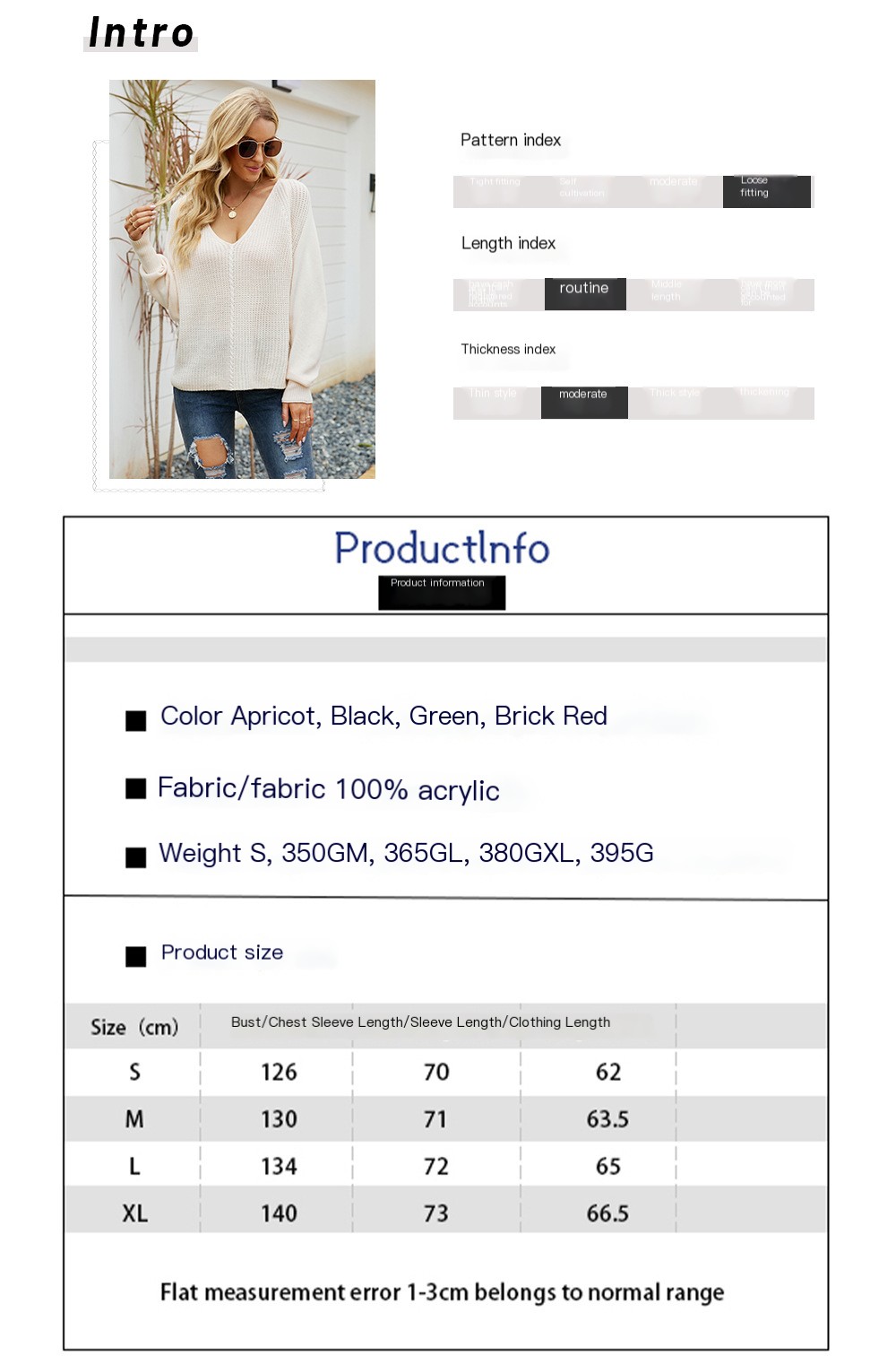 Choose your perfect fit from sizes S to XL, ensuring you find the right comfort and style for your body type. With weights ranging from 350G to 395G depending on size, this sweater is both lightweight and warm, making it an ideal choice for layering during the chillier months.