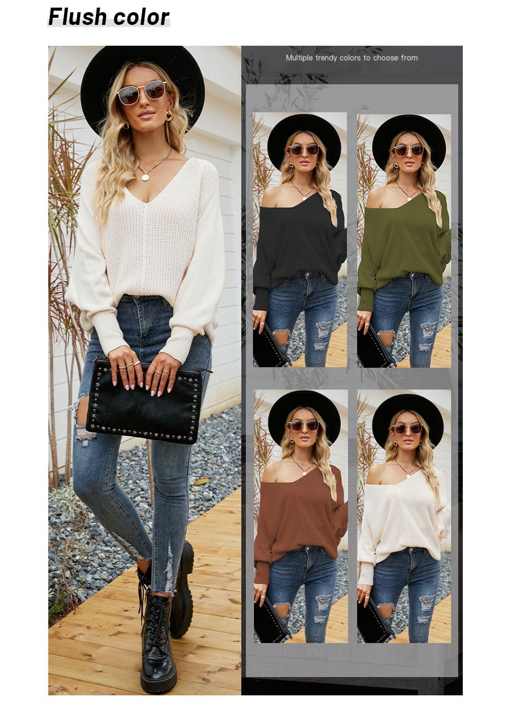 Whether you're heading out for a casual day with friends or enjoying a cozy evening at home, the bat sleeve knitted sweater is your go-to wardrobe staple. Elevate your fashion game this season and make a statement!