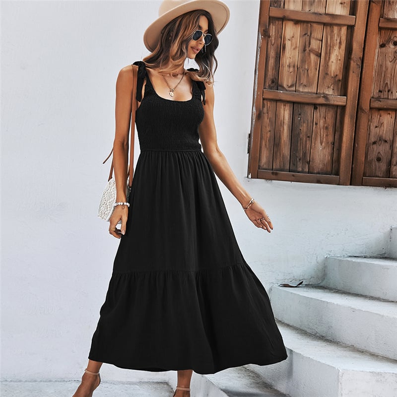Elevate your summer wardrobe with our stunning Women Summer Splicing Strap Solid Black Dress. This exquisite dress is designed to provide both style and comfort, making it the perfect choice for any summer occasion. Crafted from high-quality Tencel fabric, it offers a soft and breathable feel against your skin, ideal for warm weather.